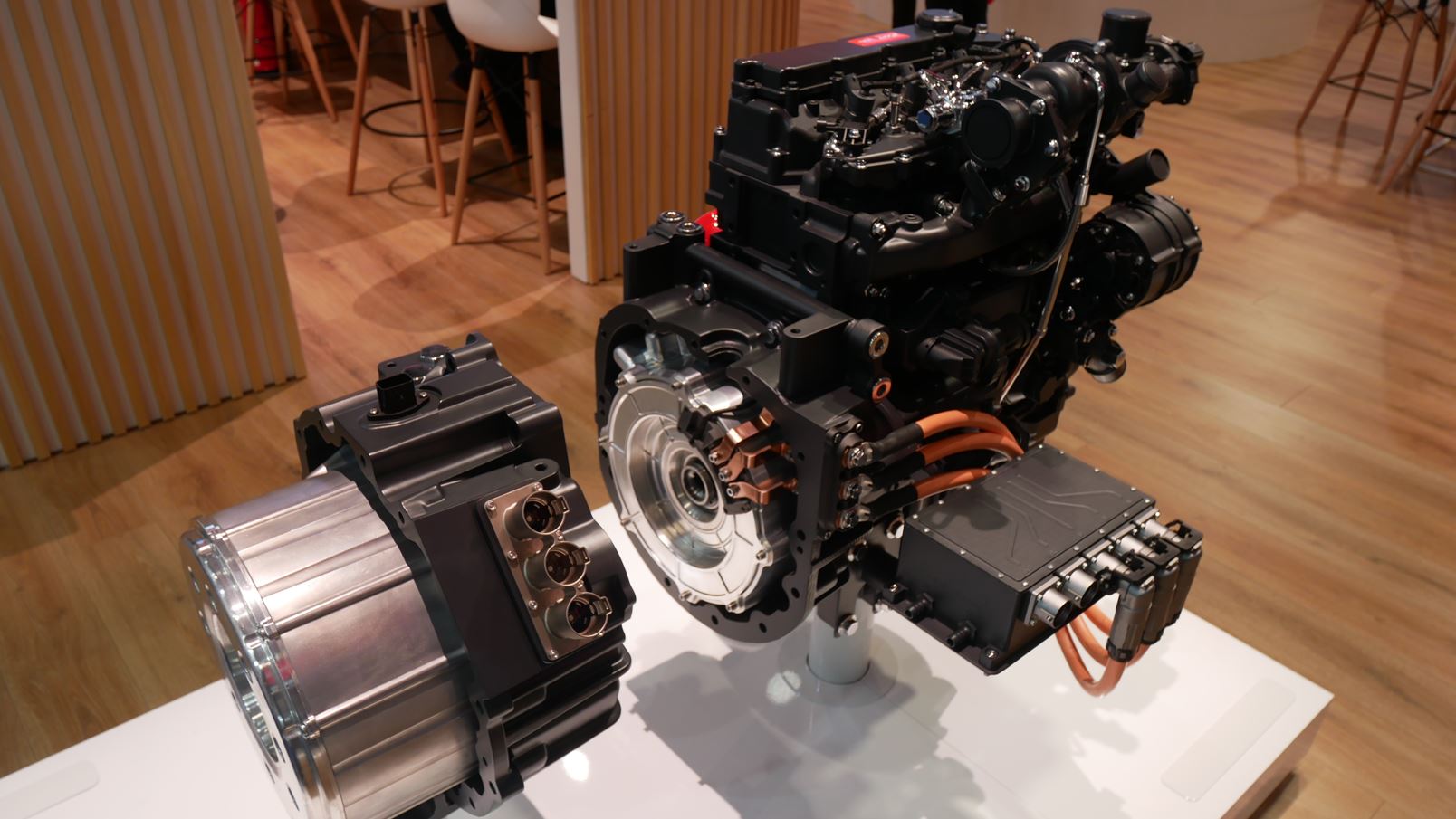 Infine è sempre Lopez, in conclusione, che ci ha illustrato l’ibrido. È il Diesel of the year 2020, che cambia voltaggio. «L’F28 si presenta con modulo high voltage, a 700 Volt, e lavora in configurazione range extender. È quello montato su di un telescopico New Holland in versione natural gas. Consente di avvalersi di un motore che lavora a punto fisso in maniera molto efficiente, e di essere un ‘electric like transmission system’».